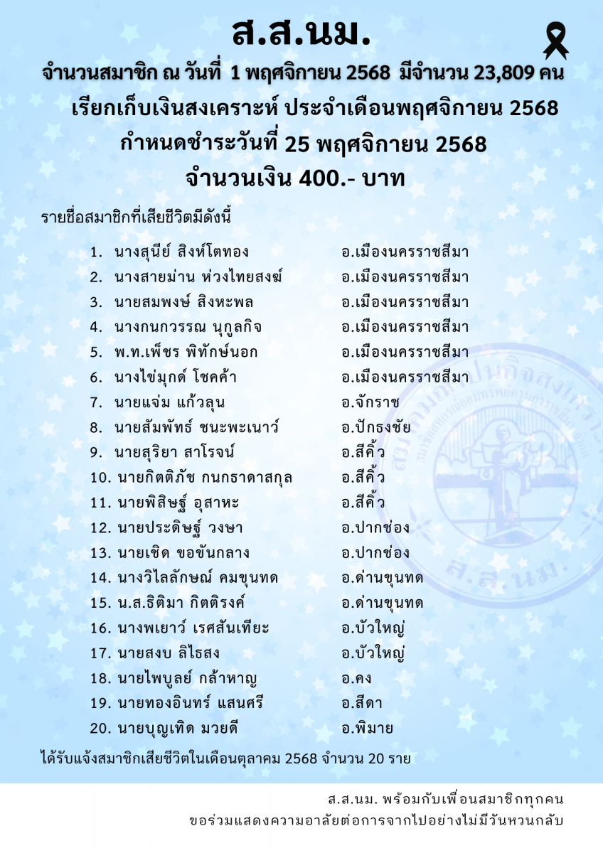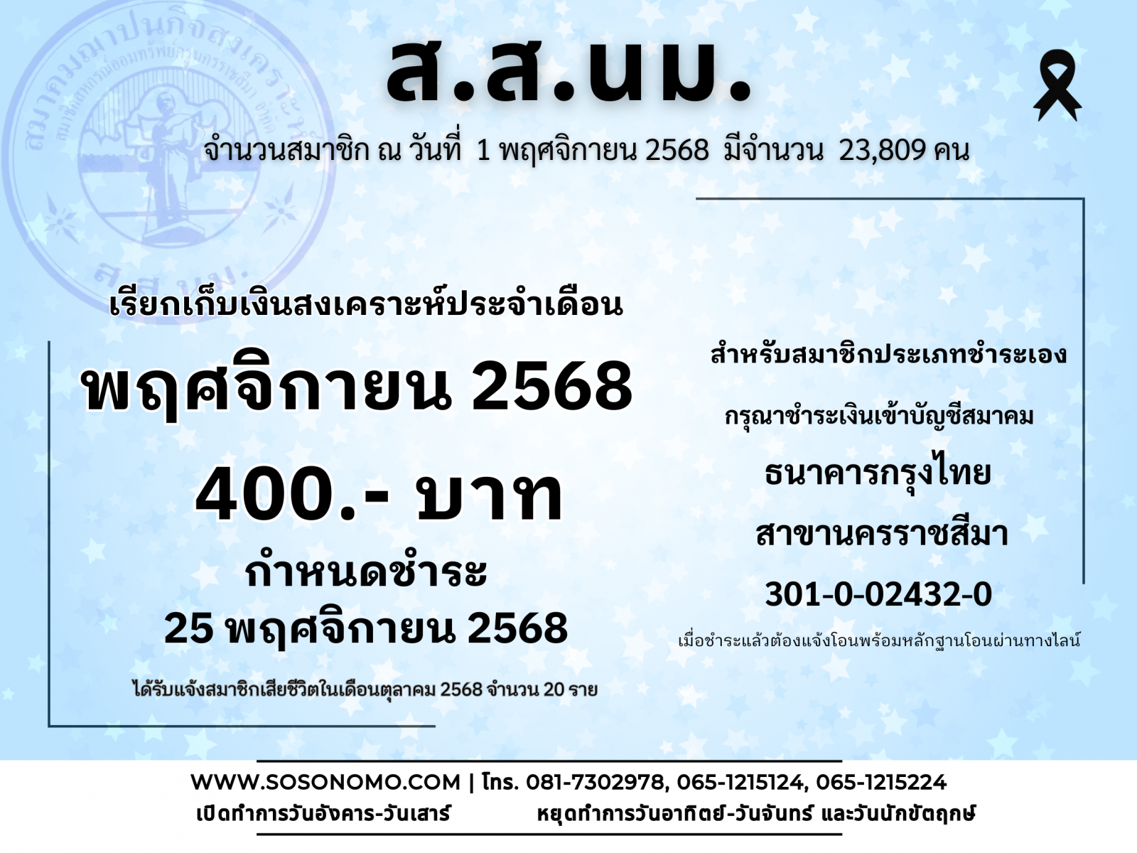 รายการเรียกเก็บเงินสงเคราะห์ประจำเดือนพฤศจิกายน 2568